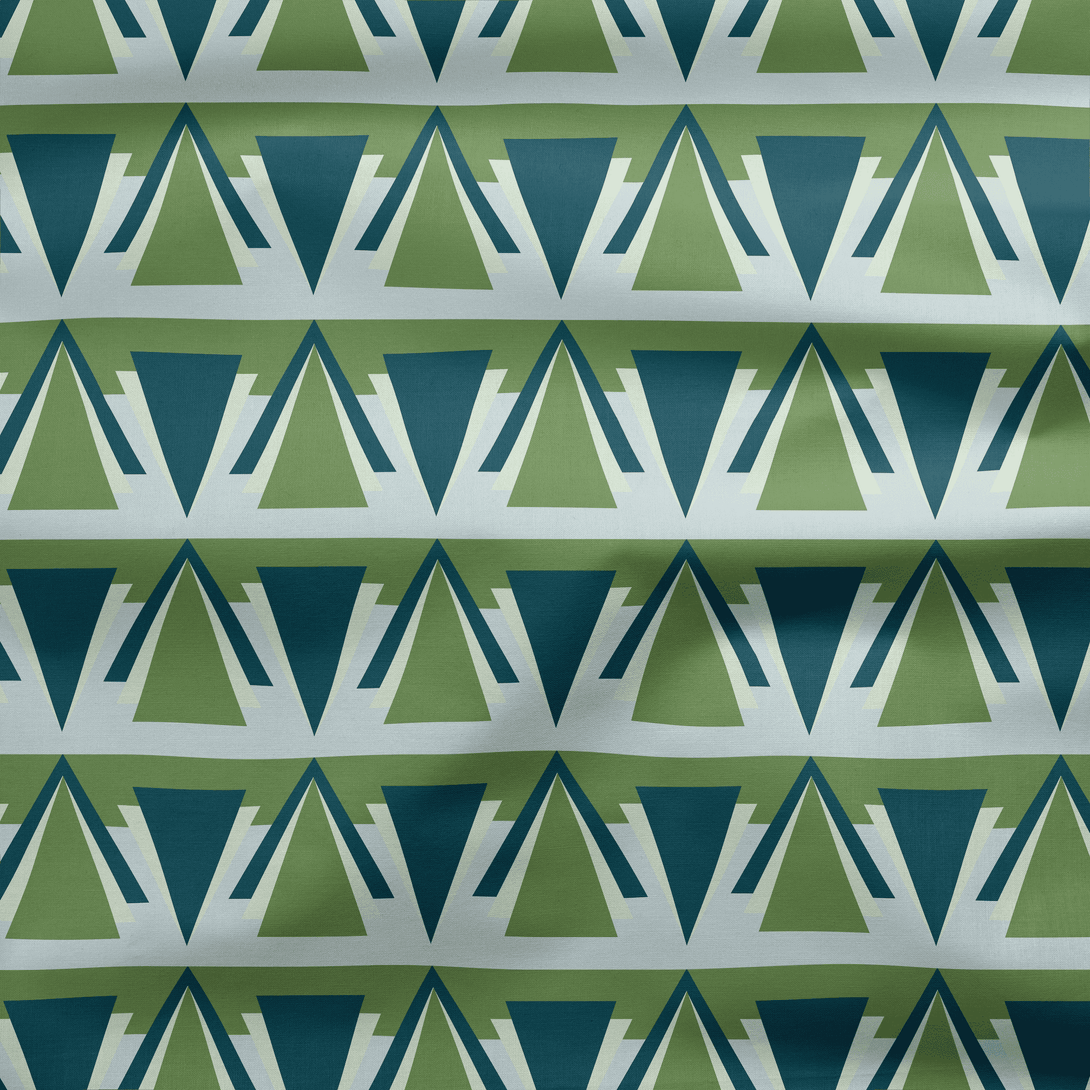 Green and Grey Art Deco Geometric Cotton Drill Fabric