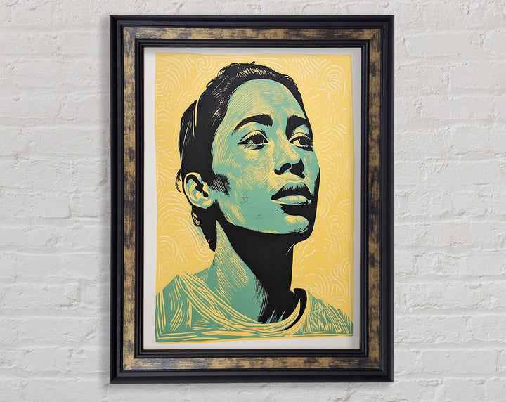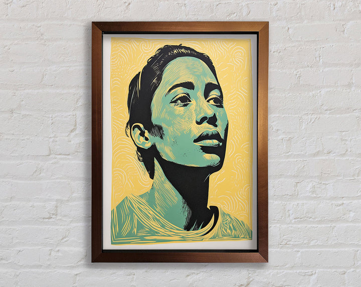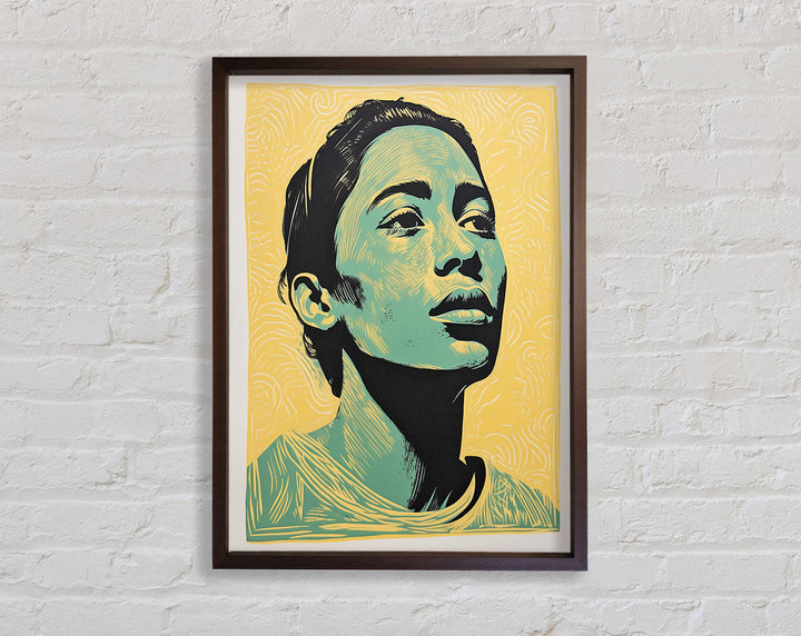 Introducing the Green And Walnut Woman Framed Print, a stunning piece of framed art that adds elegance to any space. This exquisite print captures the serene beauty of a woman surrounded by lush greenery and rich walnut tones. Available in six sizes, from small to oversized, it fits perfectly in any room, whether it's a cozy corner or a grand hallway.