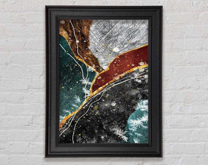 Green Black Gold Abstract Framed Print