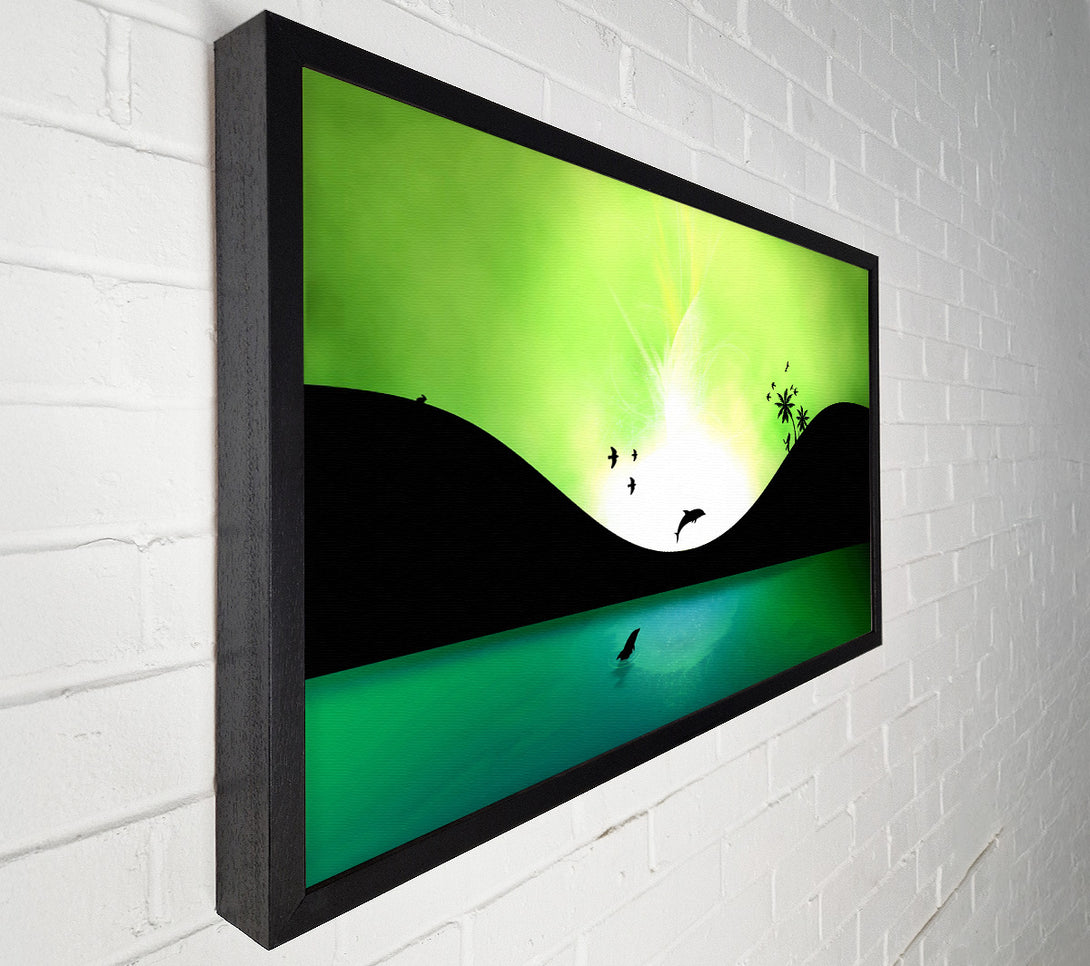 Transform your space with the Green Dolphin Paradise Canvas Print. This stunning artwork features vibrant dolphins swimming in a lush, green underwater scene. Perfect for any room, it brings a touch of nature's beauty indoors. Available in five sizes, from small to oversized, it fits any wall perfectly. The high-quality canvas ensures long-lasting color and detail. Easy to hang, this print comes ready to display with pre-installed hooks. Whether you want to brighten up your living room, bedroom, or office, the Green Dolphin Paradise Canvas Print is a beautiful and inspiring addition to your decor. Dive into tranquility and let these playful dolphins make a splash on your wall.