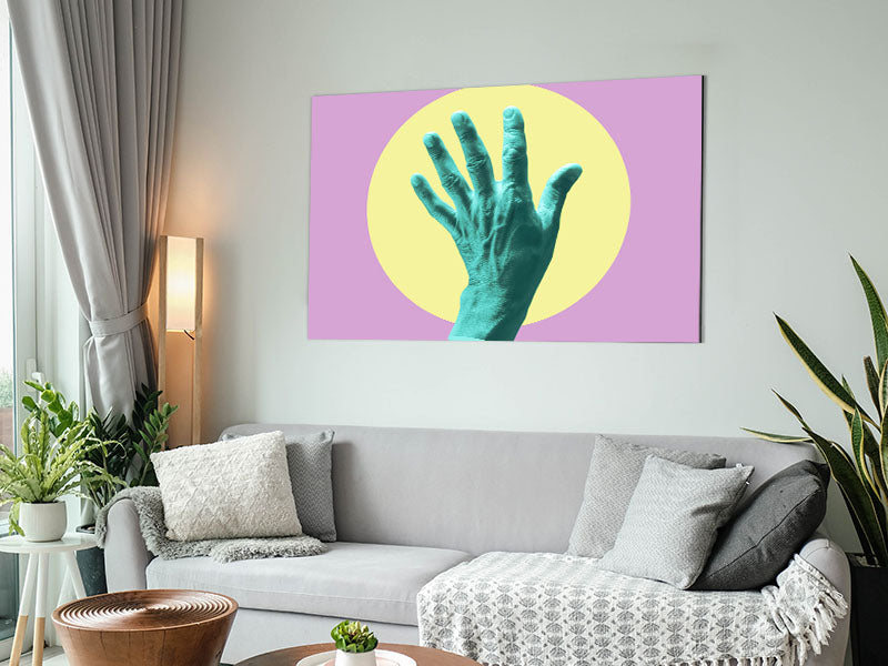 Green Hand Printed on brushed aluminium dibond. A modern way to display art and easy to maintain.