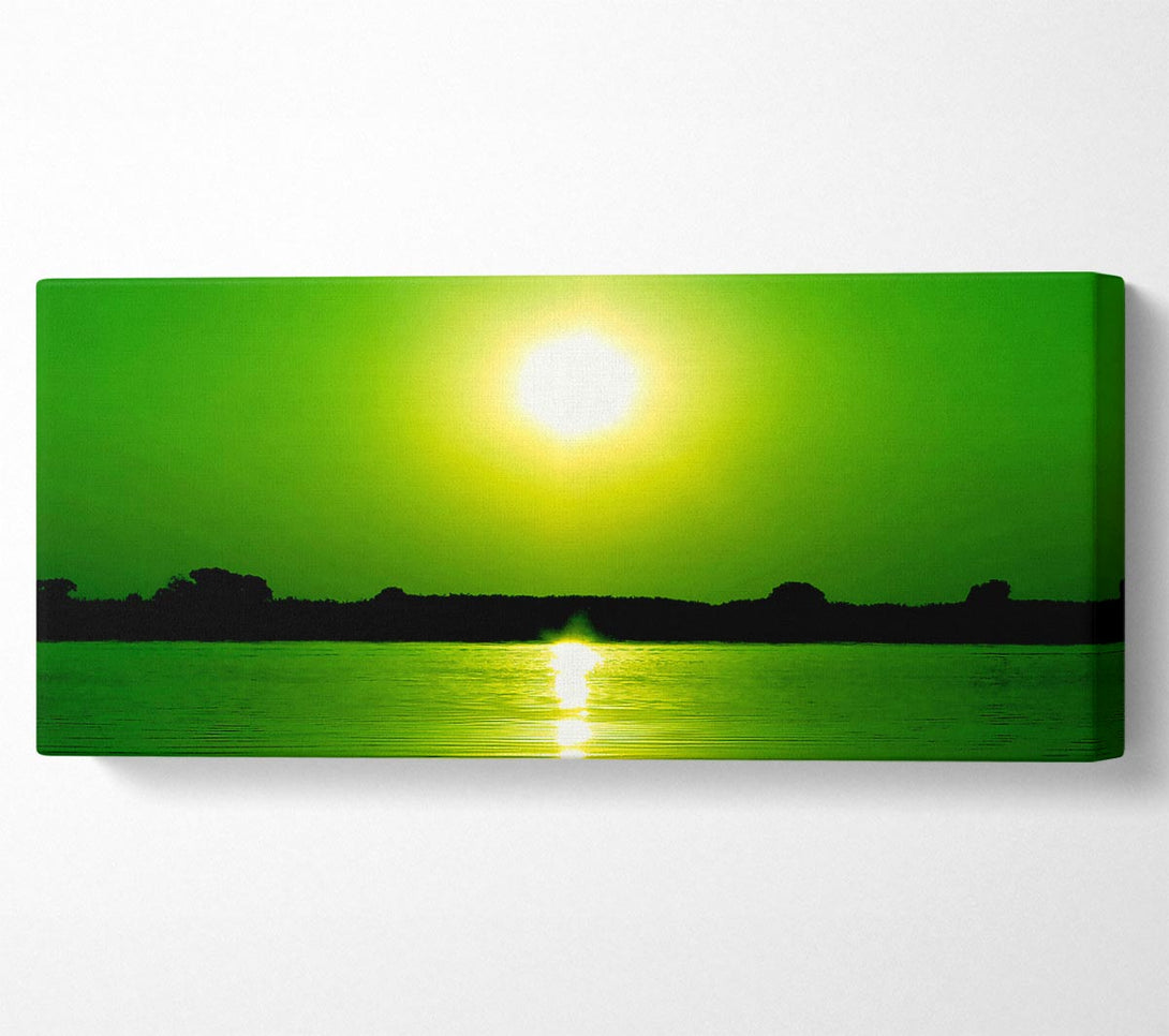 Green Lake Sun canvas, printed on coated polyester canvas. Mounted on to a 44mm box frame, ready to hang.