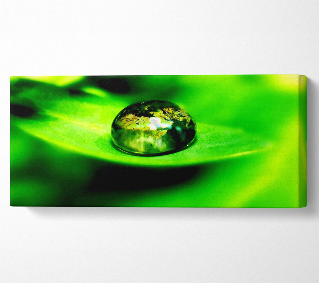 Picture of Green Leave Water Droplet Panoramic Canvas Wall Art