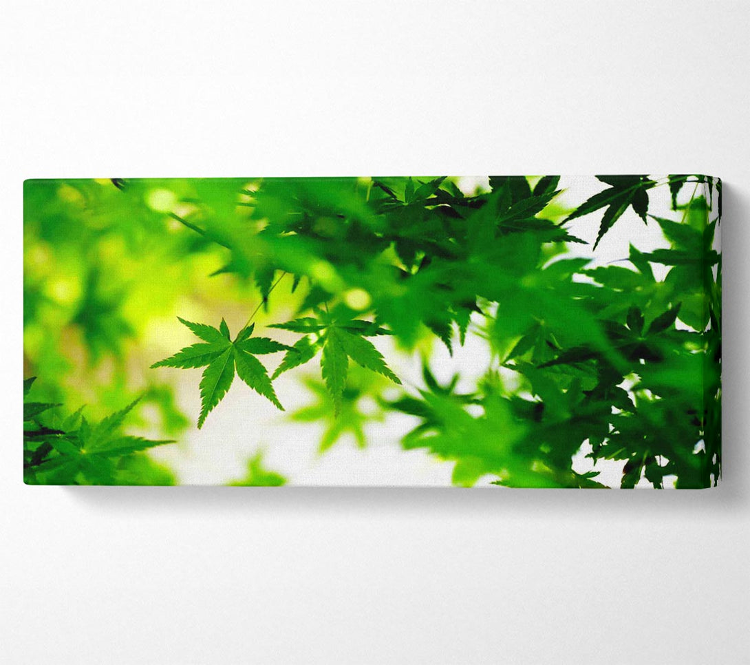 Picture of Green Leaves Bathed In Sunlight Panoramic Canvas Wall Art