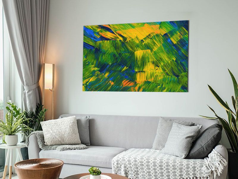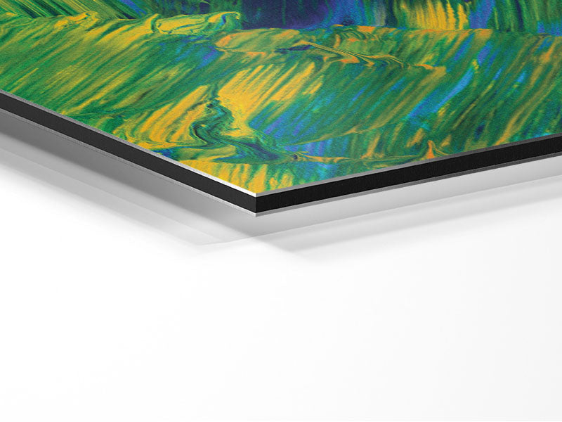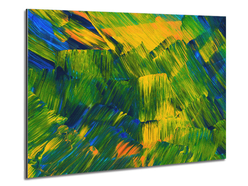 Green On Yellow Flat Brush Trokes Printed on brushed aluminium dibond. A modern way to display art and easy to maintain.