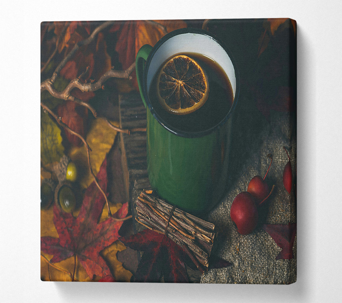 Green Tea And Autumn Leaves Canvas Print