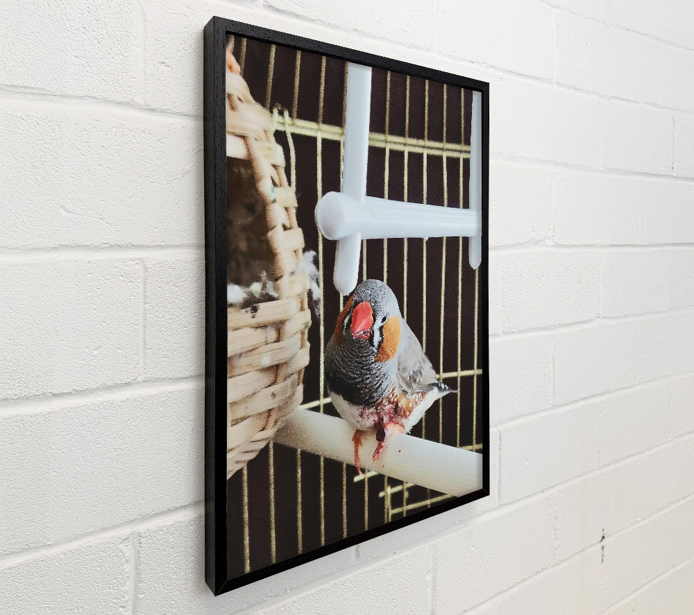 Grey Finch On Perch