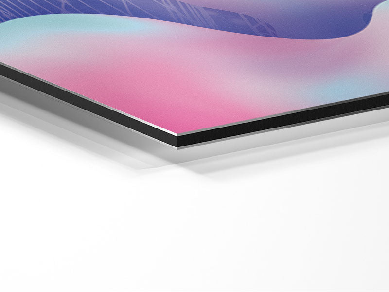 Grids and curvitures Printed on brushed aluminium dibond. A modern way to display art and easy to maintain.