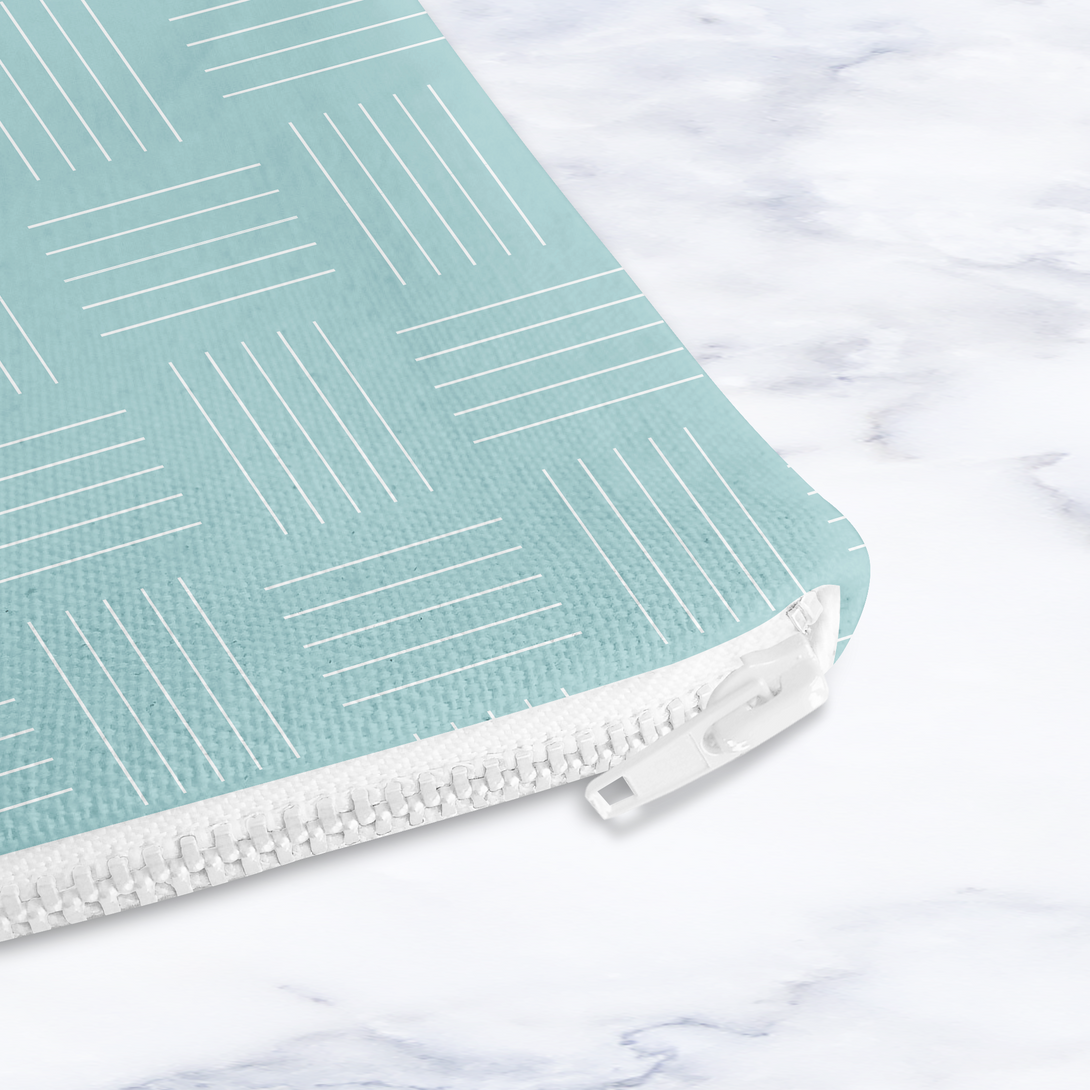 Give your everyday essentials a calm, contemporary home with this light blue Lines cosmetic bag. Designed and handmade by Shadowbright, it features our original minimalist line print and a smooth zip closure. Inside, a water-resistant coated cotton lining helps guard against spills and wipes clean in a flash. Compact enough for your handbag, spacious enough for travel.