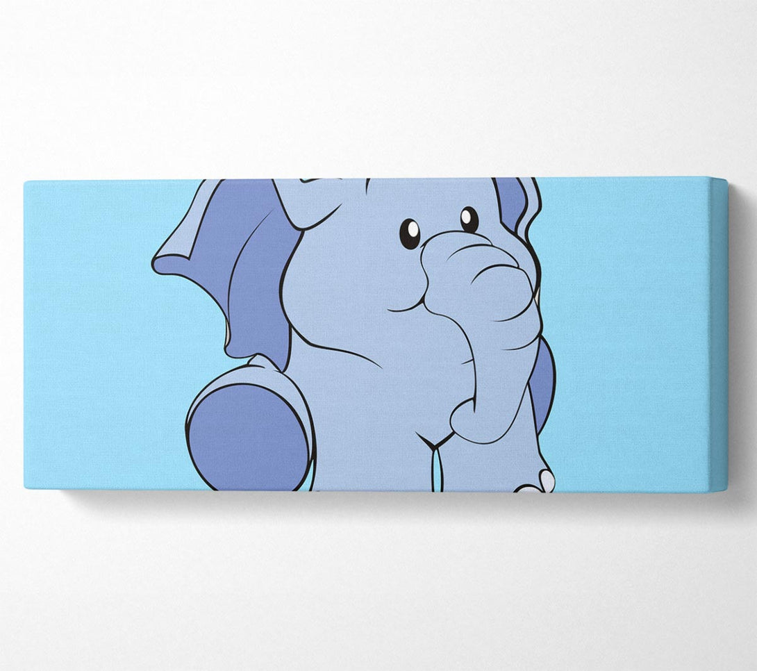 Happy Baby Elephant Baby Blue canvas, printed on coated polyester canvas. Mounted on to a 44mm box frame, ready to hang.