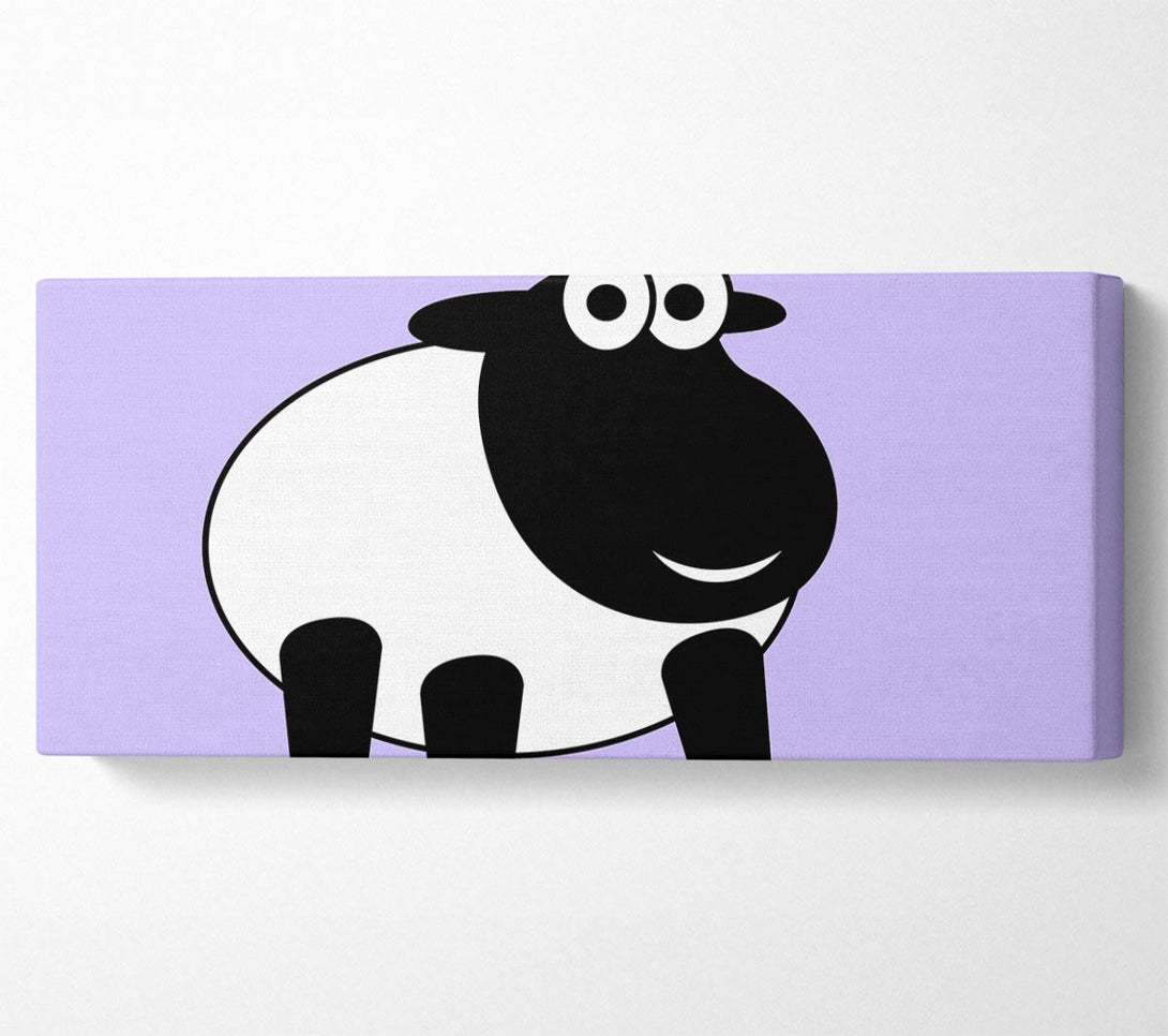 Happy Cartoon Sheep Lilac canvas, printed on coated polyester canvas. Mounted on to a 44mm box frame, ready to hang.