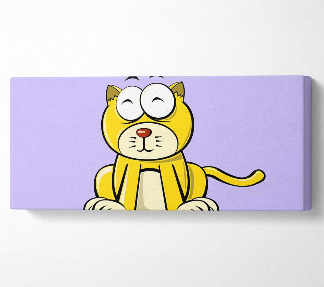 Happy Cat Sitting Lilac canvas, printed on coated polyester canvas. Mounted on to a 44mm box frame, ready to hang.