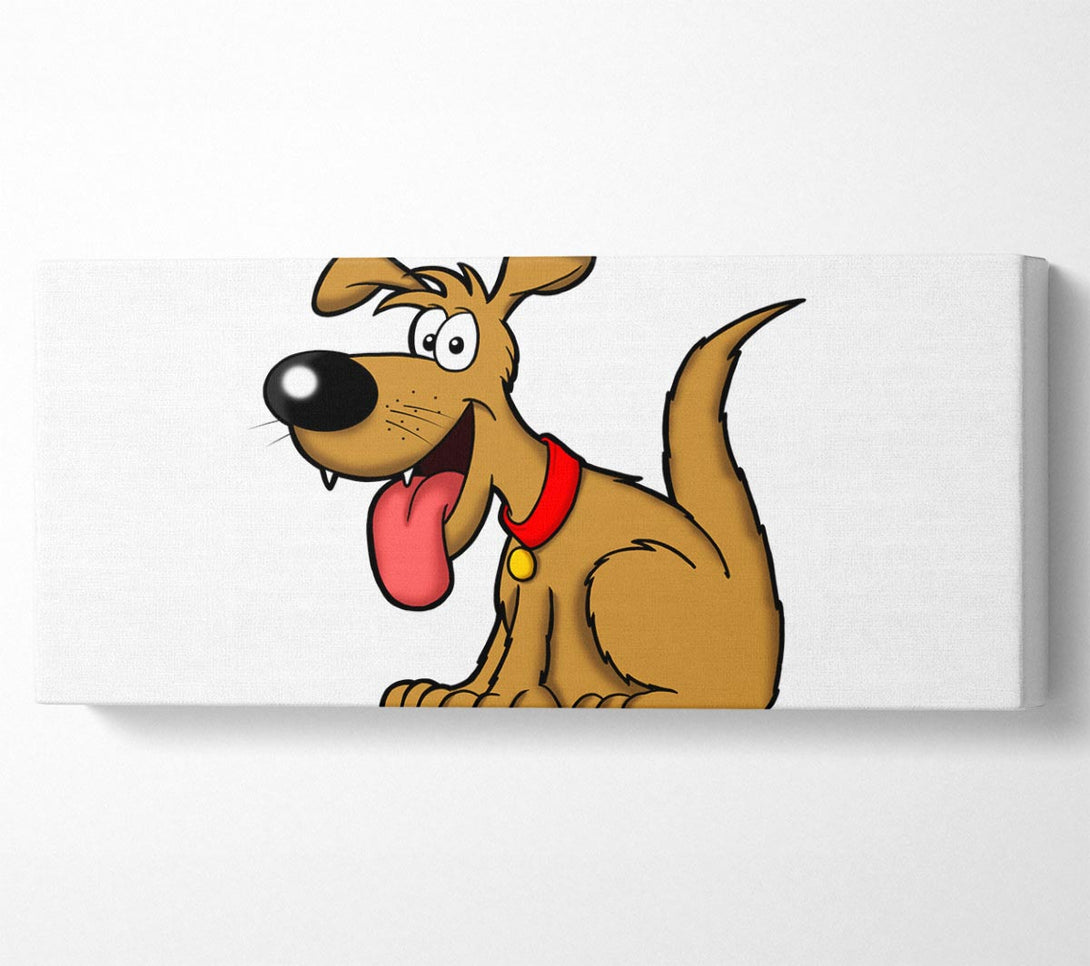 Happy Dog Cartoon With Tongue Out White canvas, printed on coated polyester canvas. Mounted on to a 44mm box frame, ready to hang.