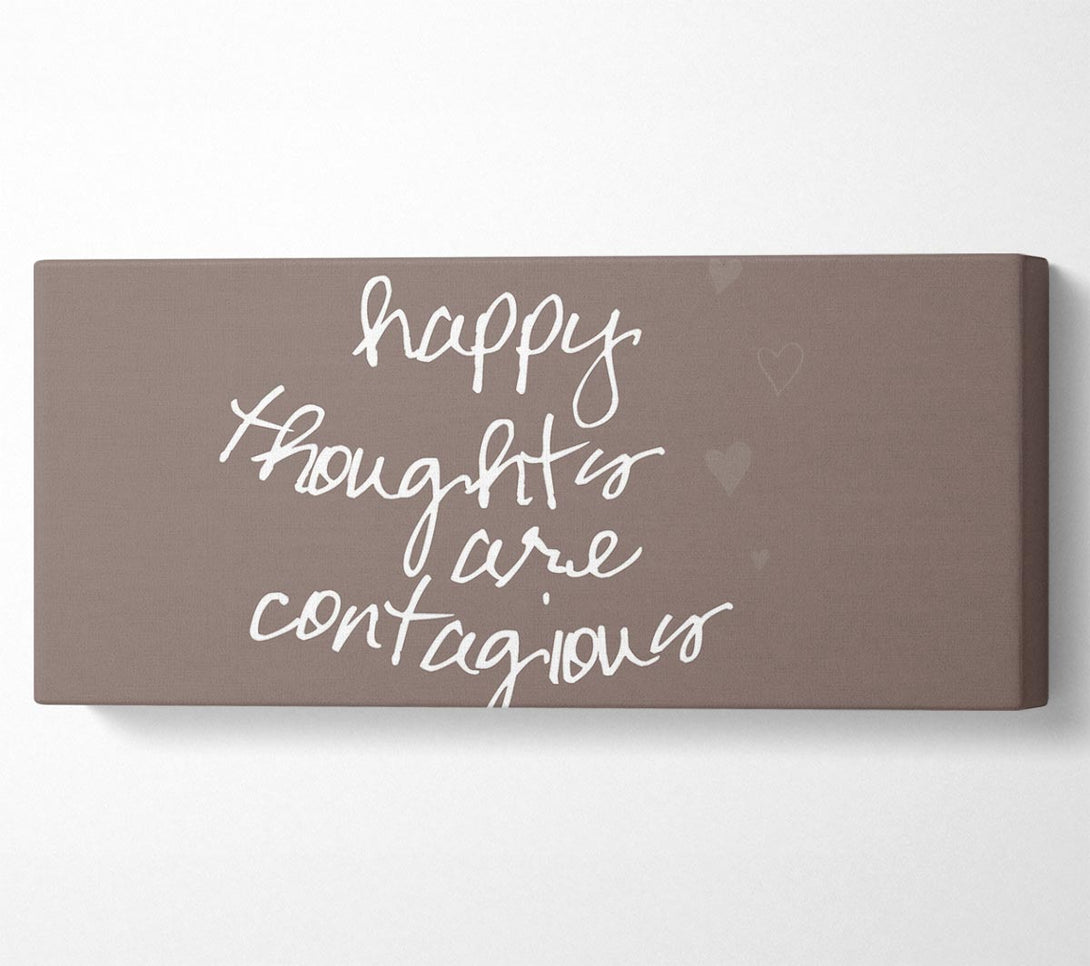 Happy Thoughts Are Contagious Beige canvas, printed on coated polyester canvas. Mounted on to a 44mm box frame, ready to hang.