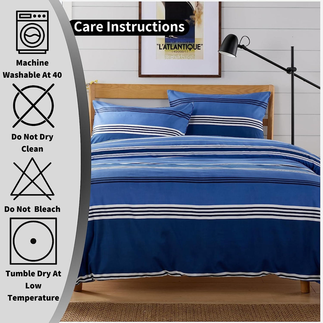 Harlow Stripes Blue Duvet Cover Set with Pillowcases Breathable Polyester Button Closure Bedding Available in Single Double and King Sizes by OLIVIA ROCCO