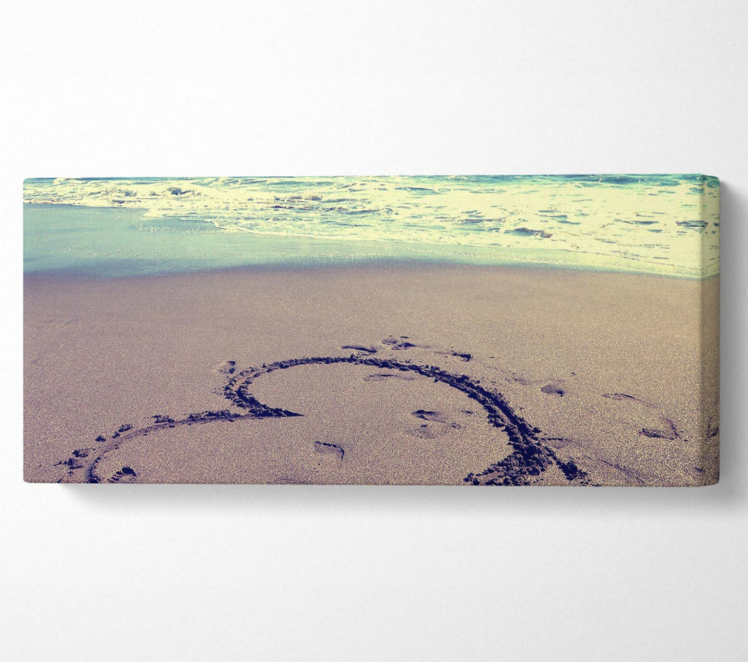 Picture of Heart On Beach Panoramic Canvas Wall Art