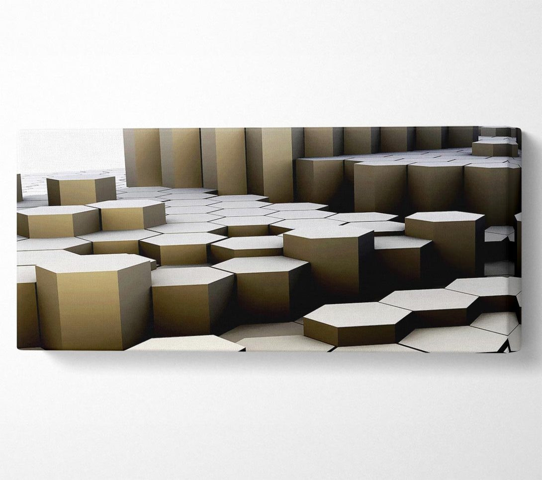 Hexagon Mountain canvas, printed on coated polyester canvas. Mounted on to a 44mm box frame, ready to hang.