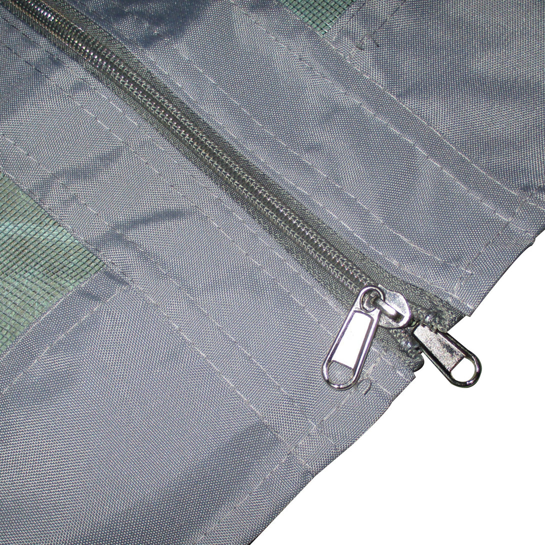 - Six mesh curtains to provide privacy and protection against bugs when down. Can be tied to the frame when not needed, with a middle zip fastening for easy access when in use