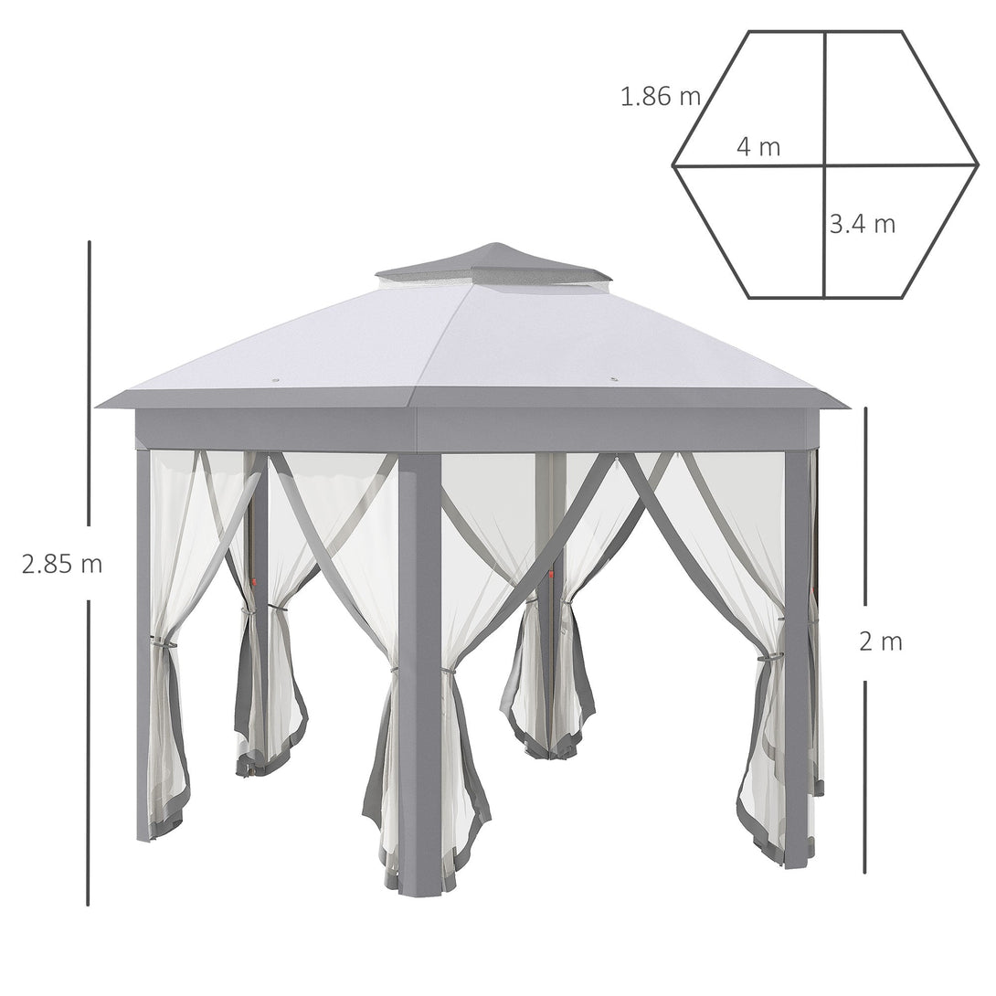 Hexagon Patio Gazebo Pop Up Gazebo Outdoor Double Roof Instant Shelter with Netting