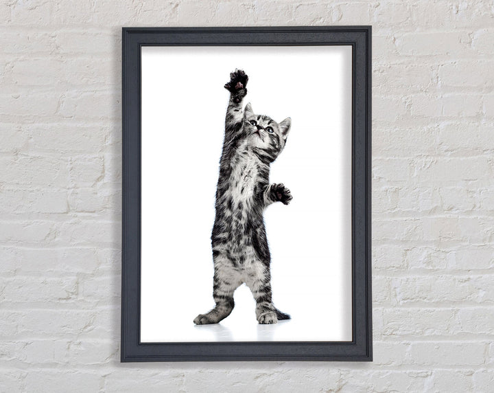 Add a touch of fun to your home with the High Five Cat Framed Print. This delightful piece of framed art is perfect for cat lovers and anyone looking to brighten up their space. Available in six different sizes, from small to oversized, you can find the perfect fit for any wall. Choose from a variety of colors to match your decor. Each print is handmade in the United Kingdom, ensuring high quality and attention to detail. The frame is ready to hang, making it easy to add charm to your room right away. Elevate your home decor with this whimsical and unique piece.