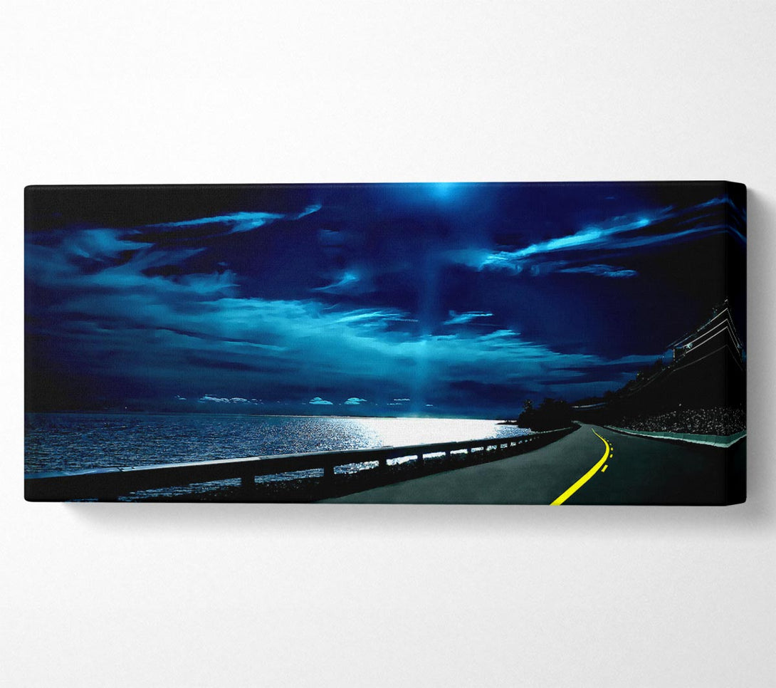Highway Nights canvas, printed on coated polyester canvas. Mounted on to a 44mm box frame, ready to hang.