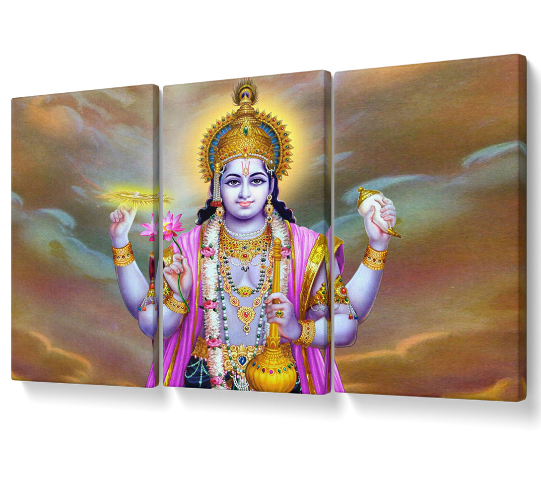 Hindu Vishnu canvas, printed on coated polyester canvas. Mounted on to a 44mm box frame, ready to hang.