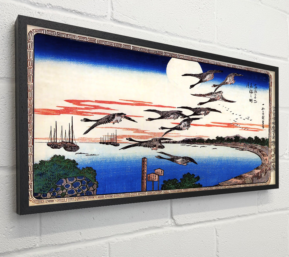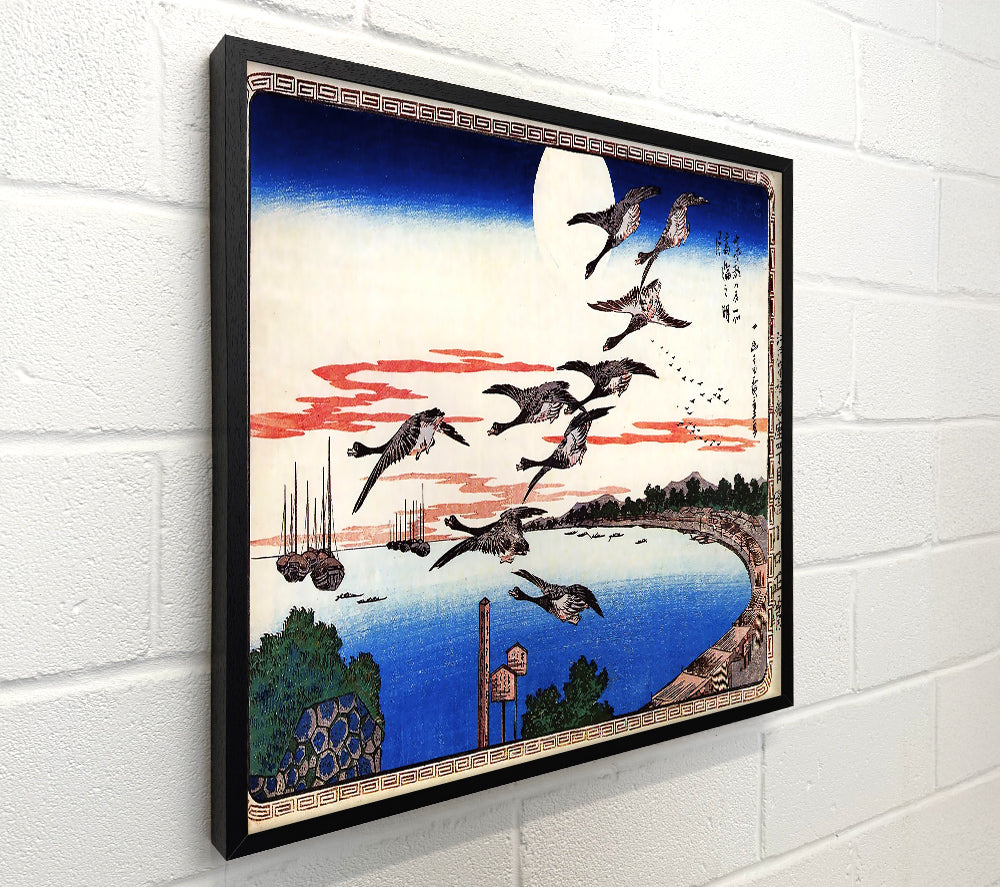 Hiroshige Geese Descending Over A Bay