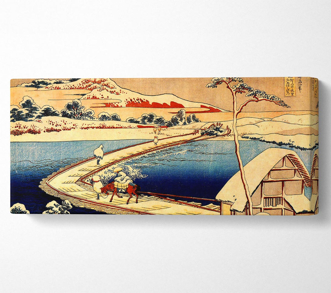 Picture of Hokusai The Swimming Bridge Of Sano Panoramic Canvas Wall Art
