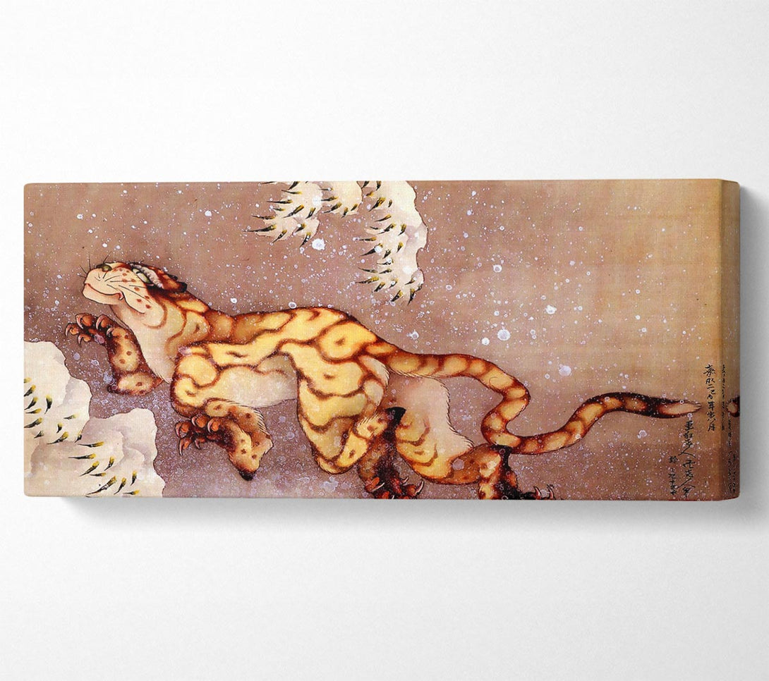 Hokusai Tiger In The Snow canvas, printed on coated polyester canvas. Mounted on to a 44mm box frame, ready to hang.