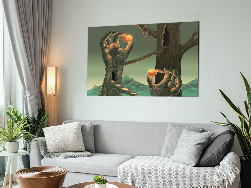 Holding The Balls Of Light Printed on brushed aluminium dibond. A modern way to display art and easy to maintain.