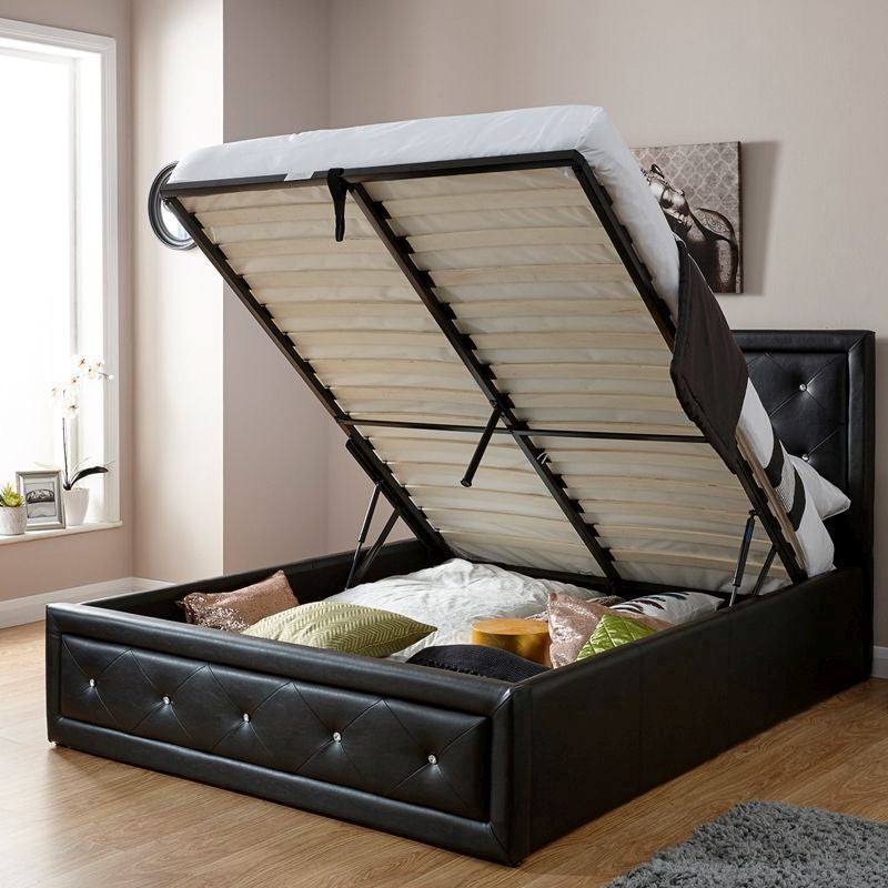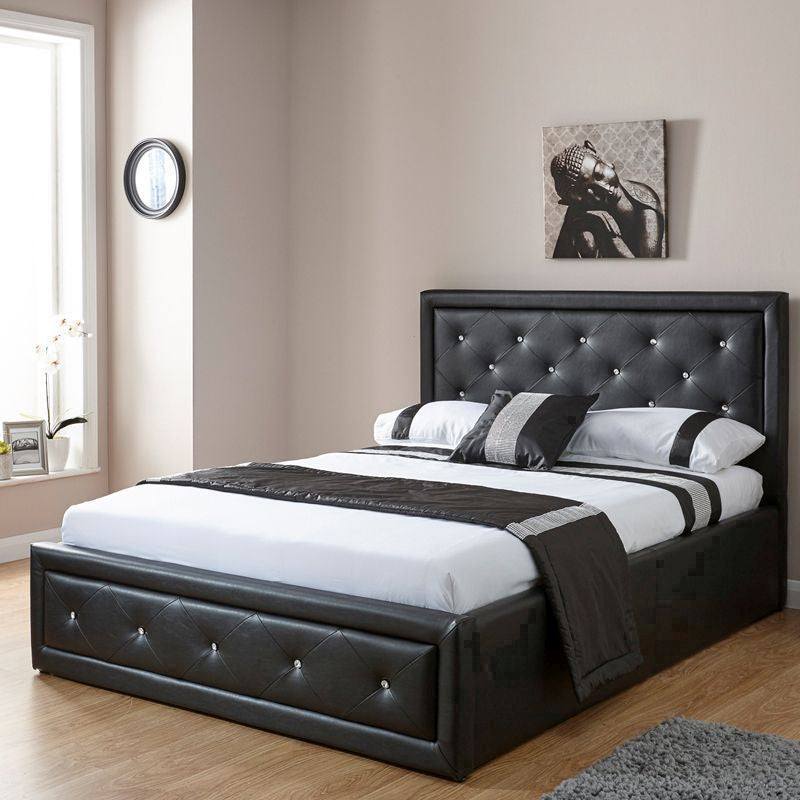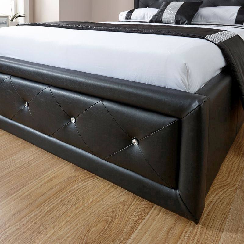 Hollywood King Size Ottoman Bed Faux Leather Black 5 x 7ft