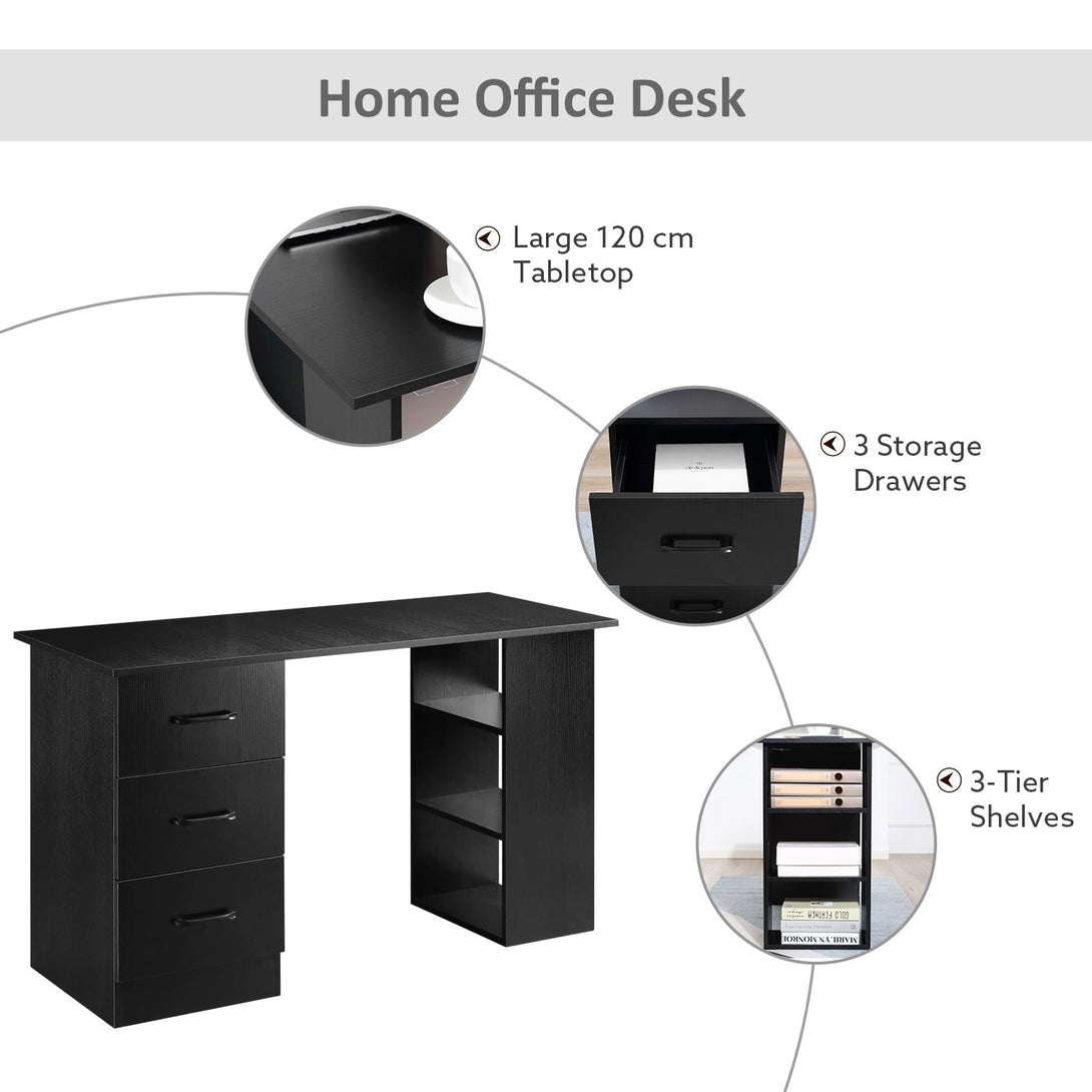 Homcom 120cm Computer Desk With Storage Shelves Drawers Writing Table Study Workstation For Home Office Black