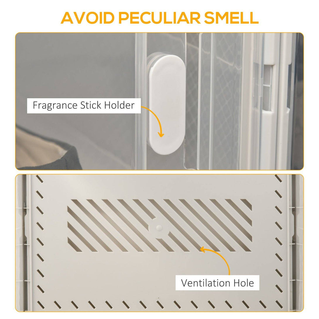 Are you tired of shoes on display and in the closet without any boxes and collecting dust? This clear shoe box from HOMCOM made into a customisable design 18 cubes that can be set up in any way you wish, a cutout design on top securely stack one box on top of another, making it ideal for fitting into any size and shape space hassle-free. With clear plastic sheets, you can find items quickly. A great piece to your house!