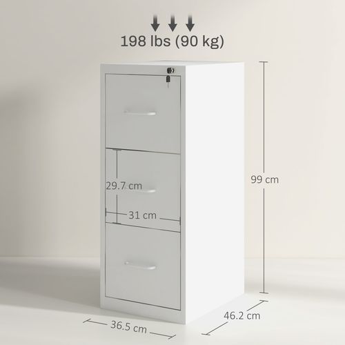 Homcom 3 Drawer Filing Cabinet Steel File Cabinet for A4 Letter Size White