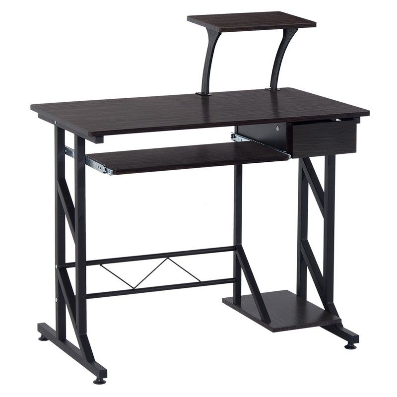 This stylish computer desk is constructed of quality steel and MDF for daily years of use. It has a compact design to use the smallest amount of space, so great for small rooms. Comes with a large workspace, a sliding keyboard tray, a movable elevated shelf, a drawer and a CPU stand for your monitor and daily work items. Equipped with anti-slip feet to make your desk more stable and secure. This modern home office desk is ideal for both home and office.