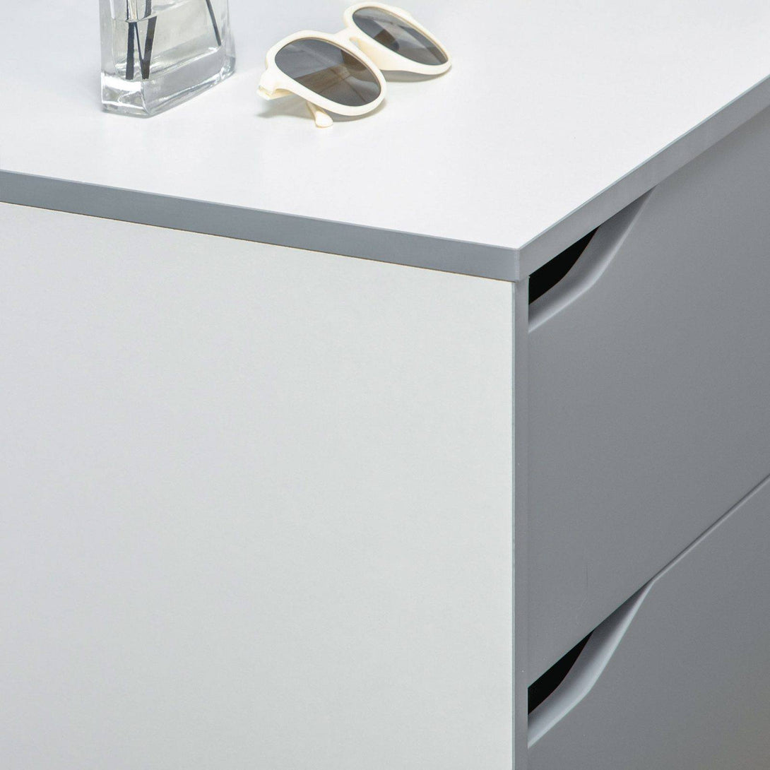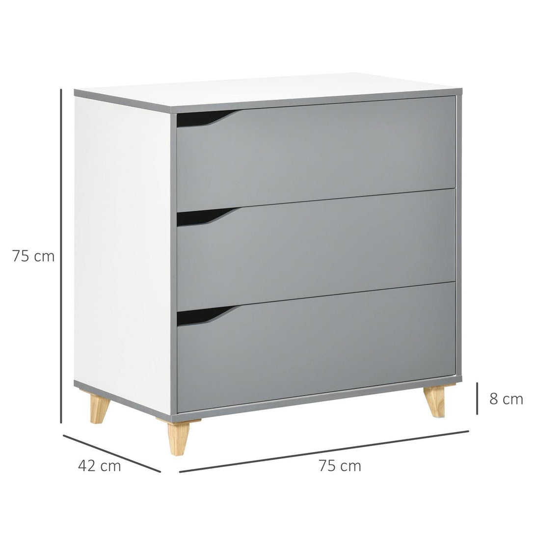 Make a statement, with just a touch of moodiness for the season ahead: look to this HOMCOM bedside dresser. It comes in a dark matte grey colour, with wood-effect details bringing a touch of the natural. Comes with three drawers - room for keeping bedside essentials stored - as well as other places in the home. Complete with wooden legs for support and anti-tipping straps for safety.