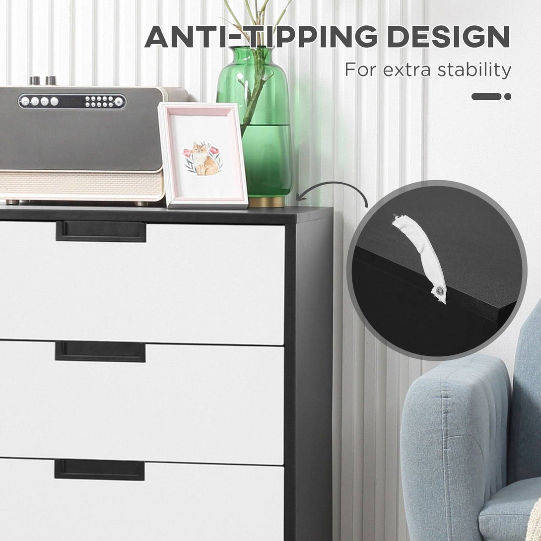 Homcom Drawer Chest 4-Drawer Storage Cabinet Organiser For Bedroom Living Room 60cmx40cmx80cm White And Black