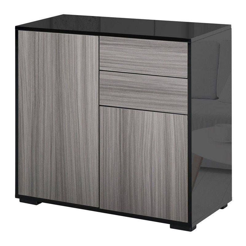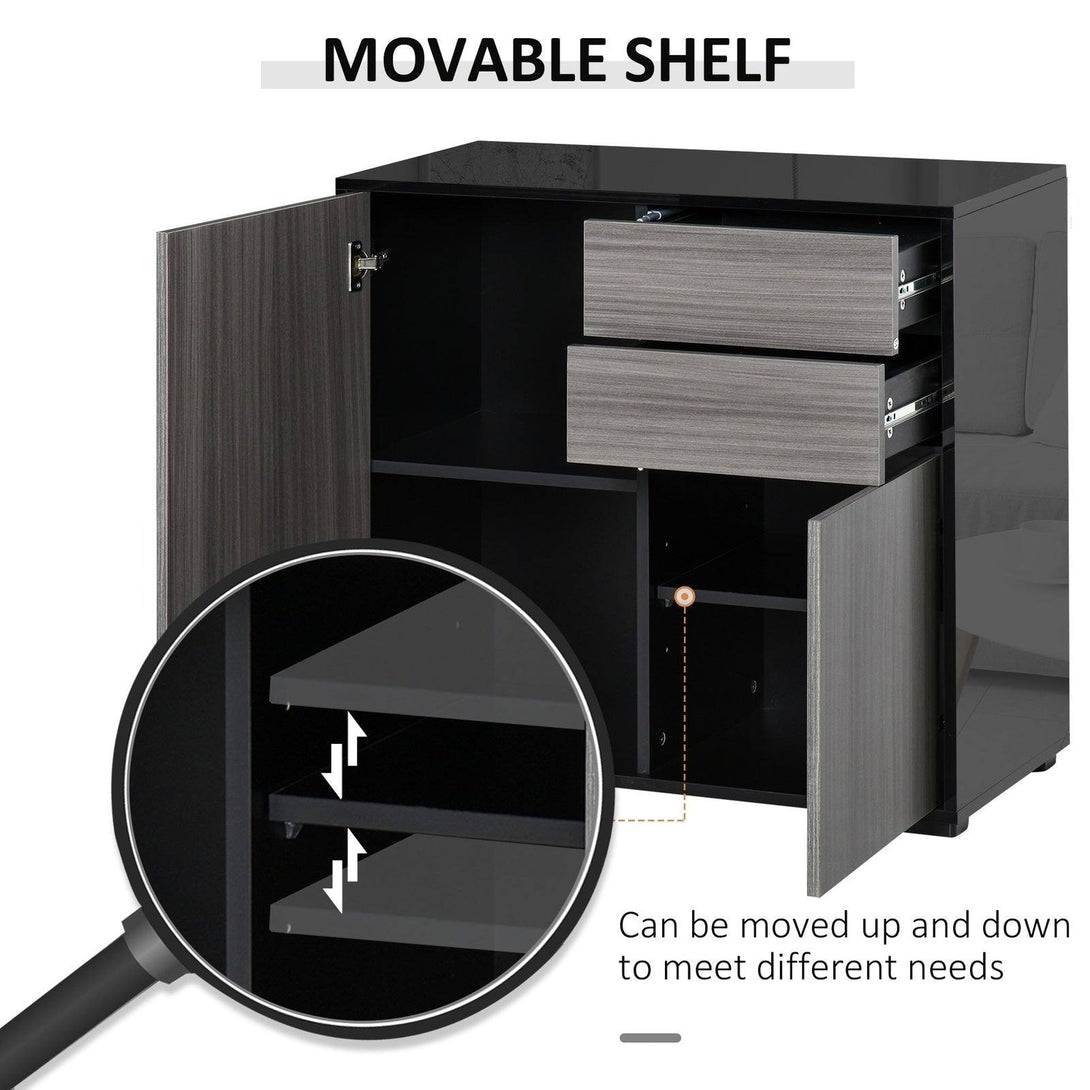 Homcom High Gloss Frame Sideboard Push-Open Design With 2 Drawer For Living Room Bedroom Light Grey And Black