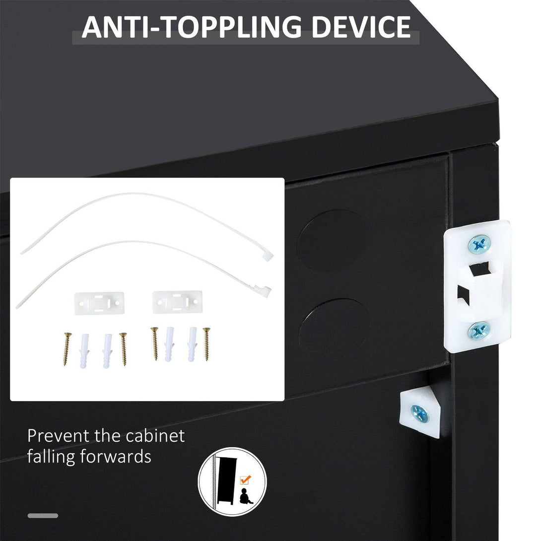 This small sideboard from HOMCOM is a durable and stylish addition to every home, keeping your space clean and tidy with ease. It's made from particle board for a durable structure, with anti-tipping straps on the back for safety. With the push-click design, drawers and cabinet doors are quick and effortless to open and close. The elevated base allows air to flow through for freshness. An effortless way to bring in sleek style into your living space with our HOMCOM storage cupboard.