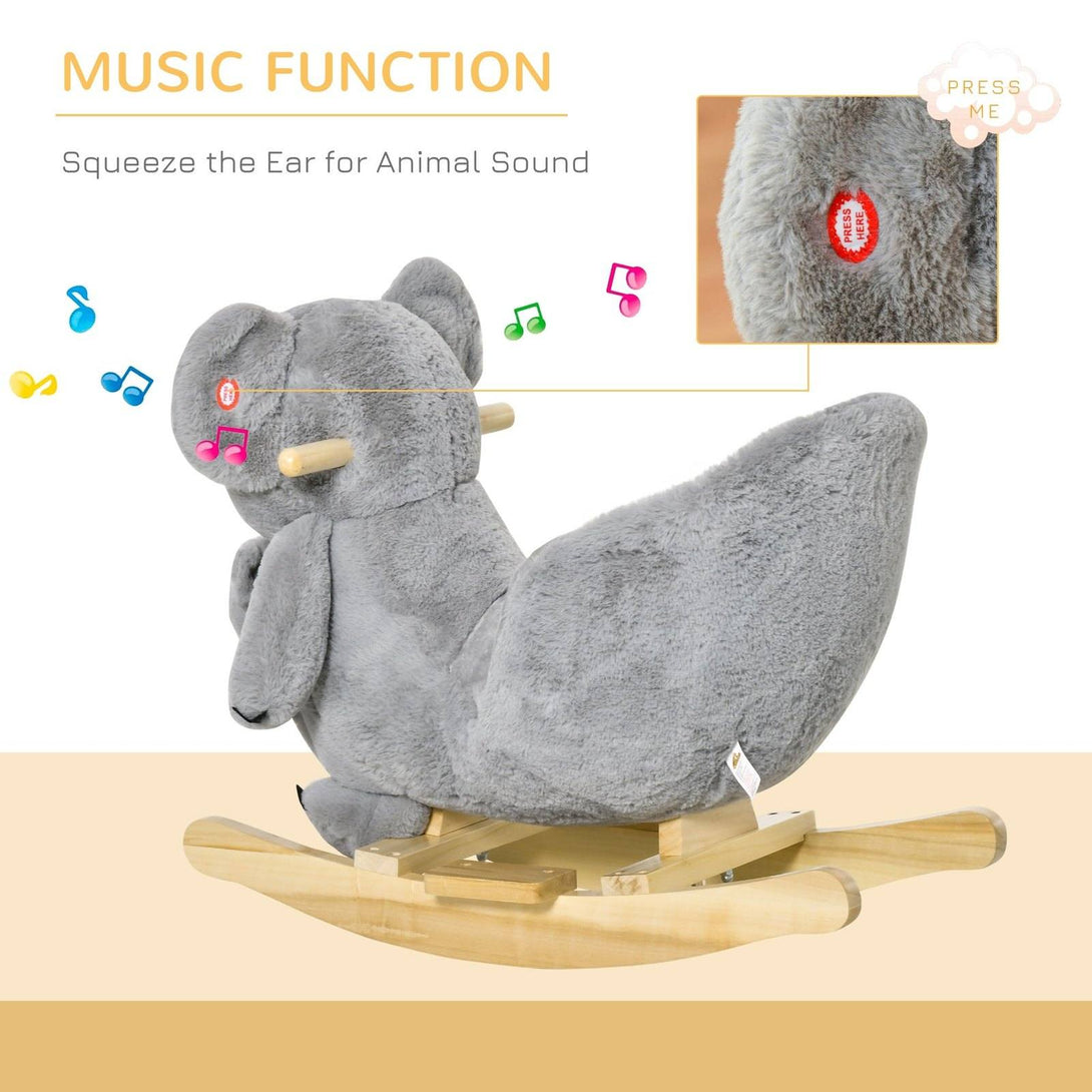 Homcom Kids Plush Ride-On Rocking Horse Koala-Shaped Toy Rocker With Gloved Doll Grey