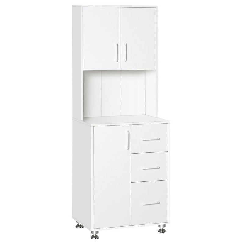Homcom Modern Kitchen Cupboard With Storage Cabinets 3 Drawers And Open Countertop For Living Room White