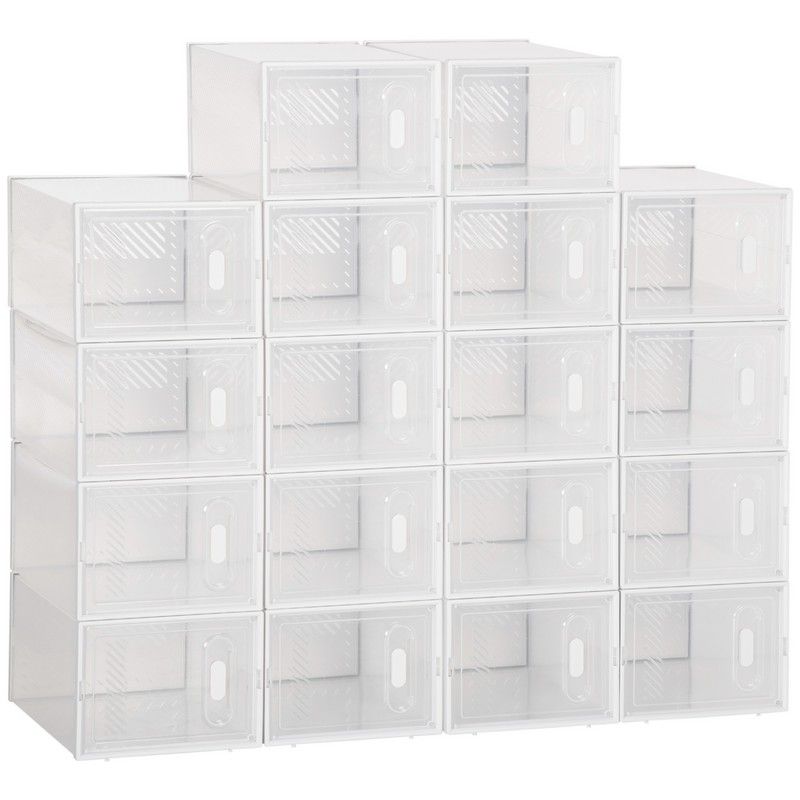 Are you tired of shoes on display and in the closet without any boxes and collecting dust? This clear shoe box from HOMCOM made into a customisable design 18 cubes that can be set up in any way you wish, a cutout design on top securely stack one box on top of another, making it ideal for fitting into any size and shape space hassle-free. With clear plastic sheets, you can find items quickly. A great piece to your house!