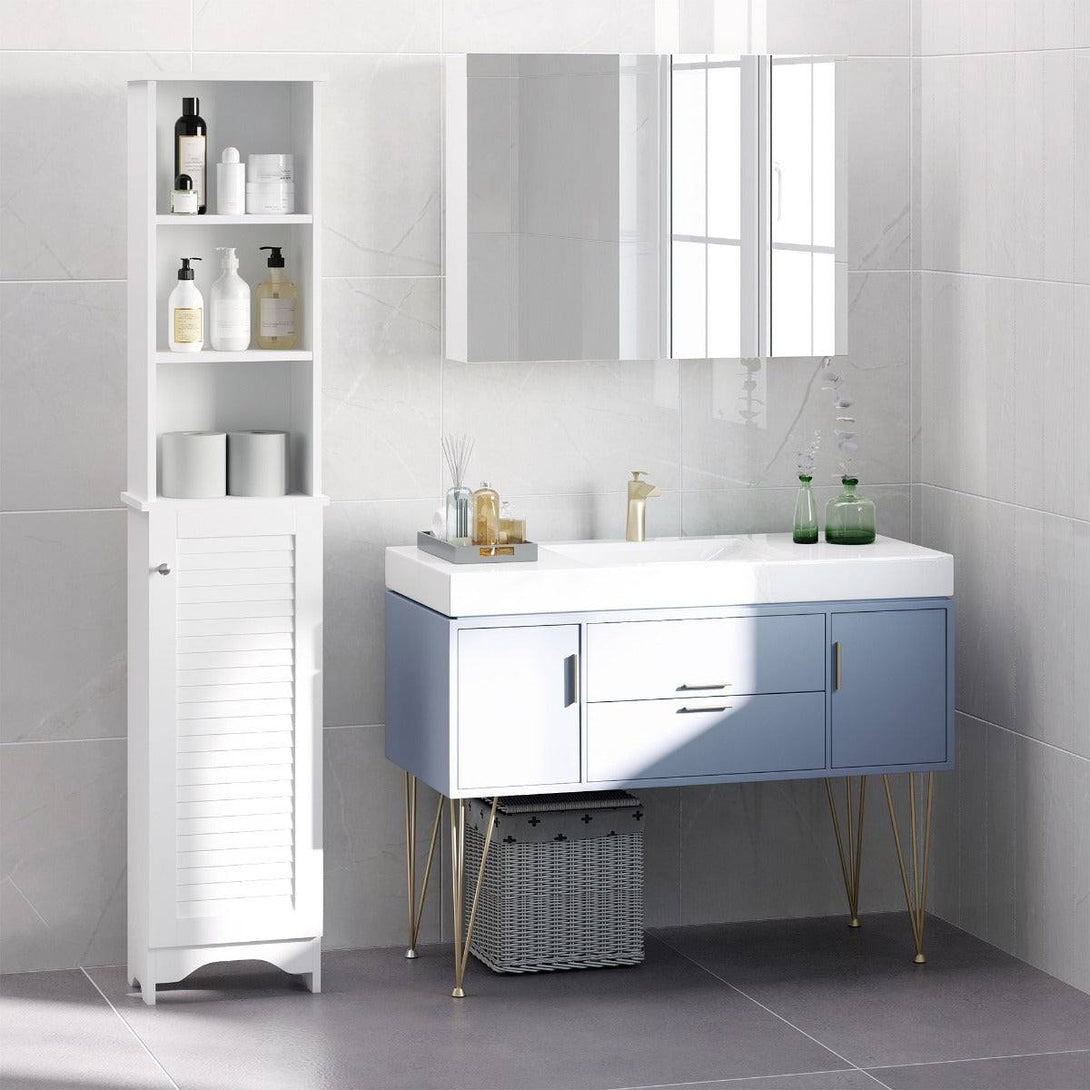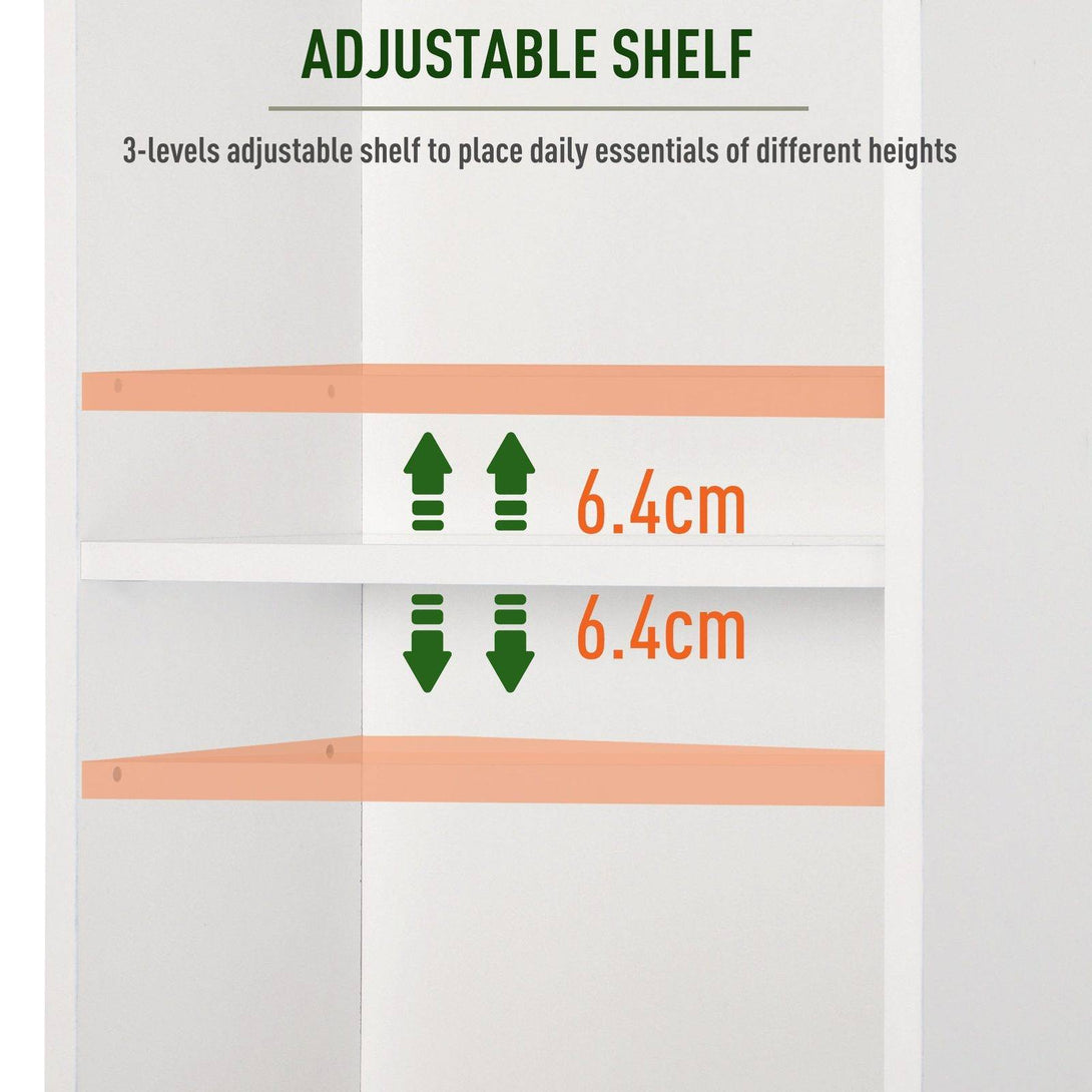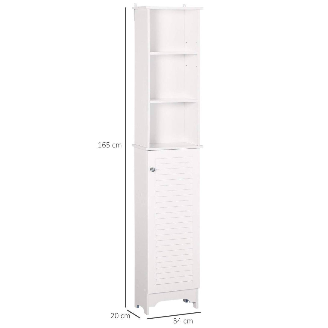Bring some retro elegance into your bathroom with this cabinet from HOMCOM. A tall and slimline 165cm x 34cm design, it is ideal for fitting into small spots, featuring three open shelves and a cupboard with three shelves for giving you plenty of storage space. The shelves are adjustable to suit your storage requirements. Made from particle board, this unit is durable and reliable for everyday use, with the shutter design on the cupboard door allowing air flow when closed. It's finished with a sturdy base to keep it balanced.