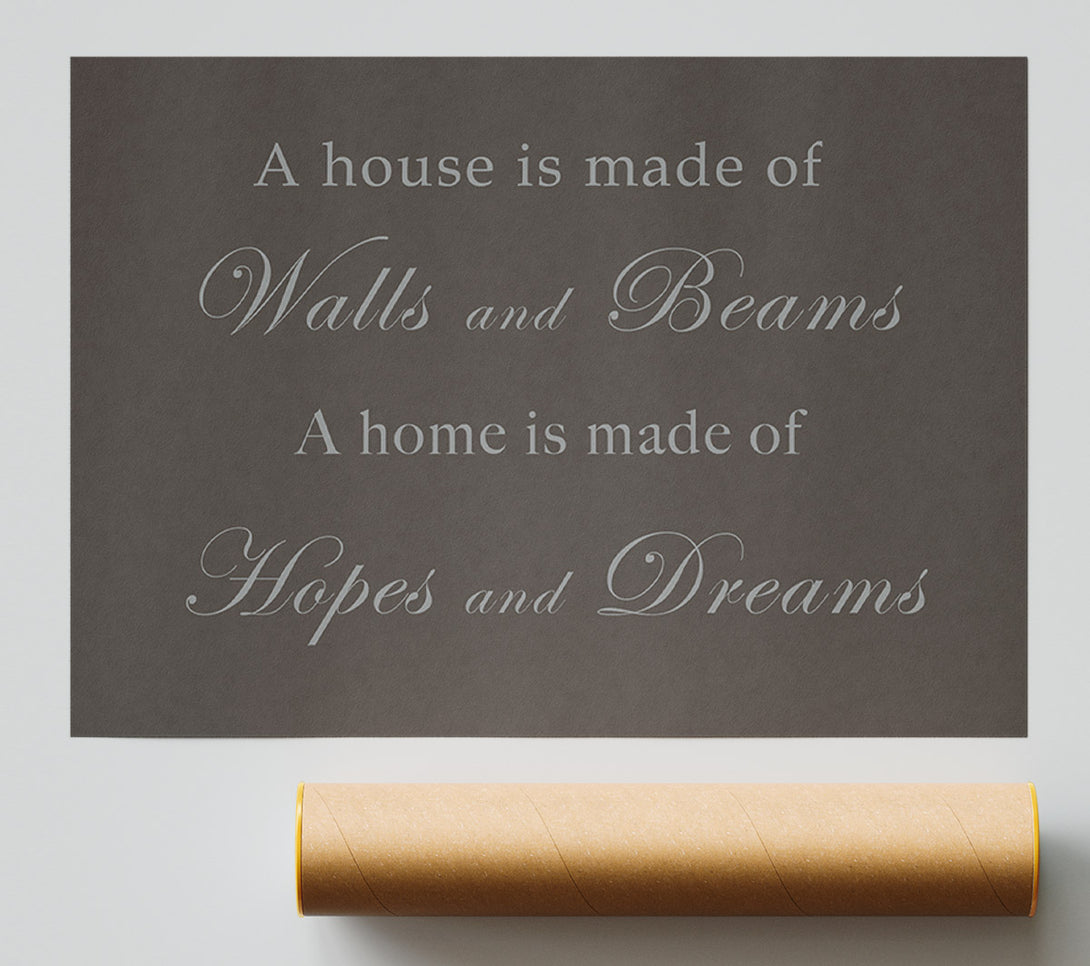 Our Home Quote Walls n Beams Hopes n Dreams Chocolate Poster is printed 260 GSM premium lustre paper that offers vibrant colours and exceptional detail.