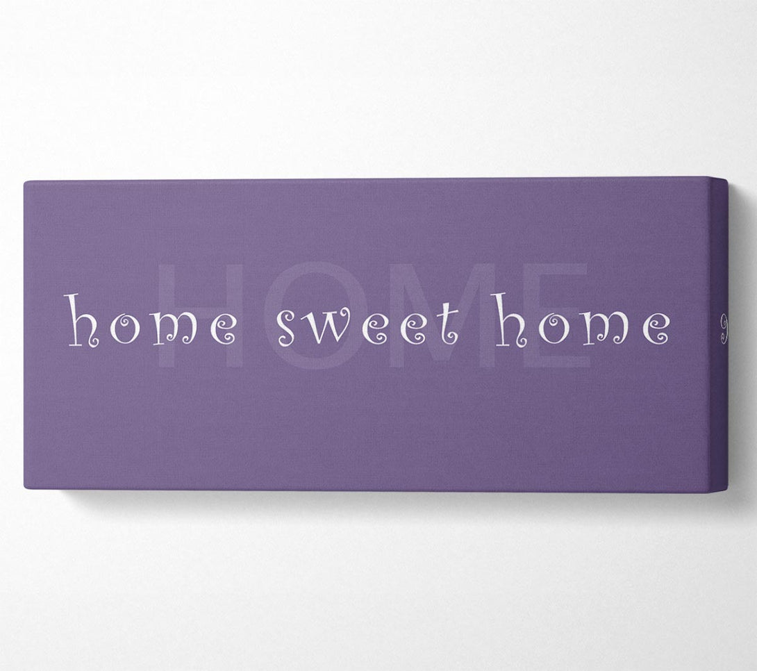 Home Sweet Home Fade Lilac canvas, printed on coated polyester canvas. Mounted on to a 44mm box frame, ready to hang.