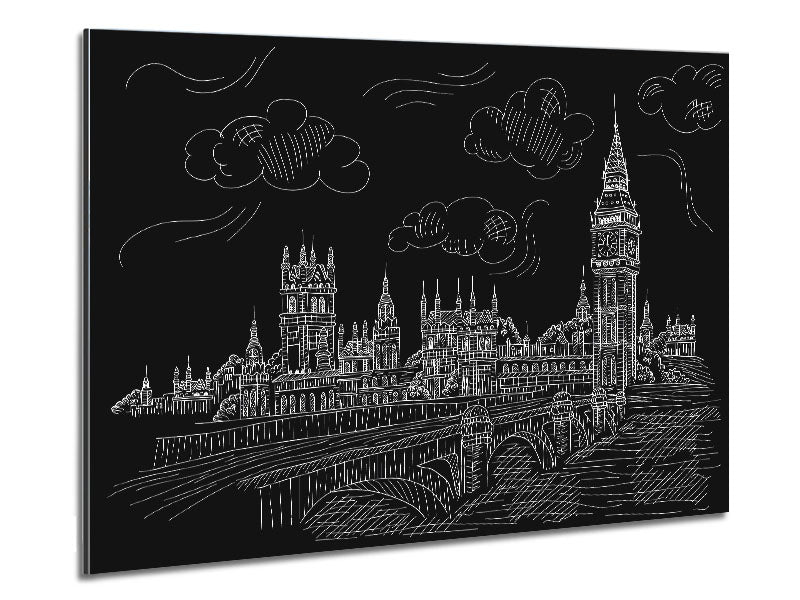 Houses Of Parliament And Big Ben Outline Printed on brushed aluminium dibond. A modern way to display art and easy to maintain.