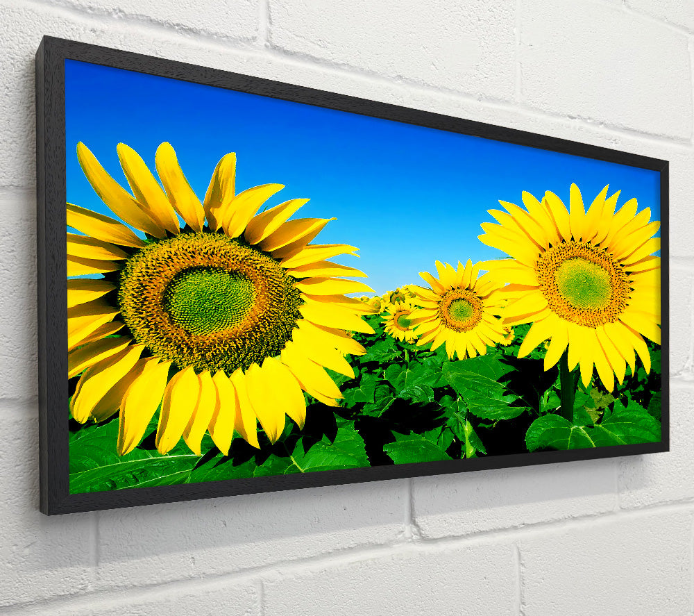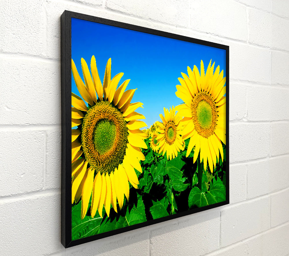 Huge Sunflower Heads In The Blue Cloudless Sky
