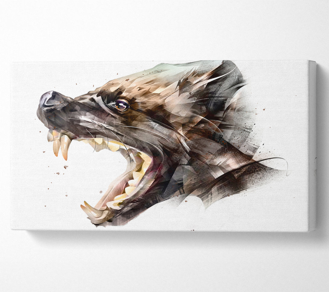 Hyena Head wide canvas, printed on coated polyester canvas. Mounted on to a 44mm box frame, ready to hang.