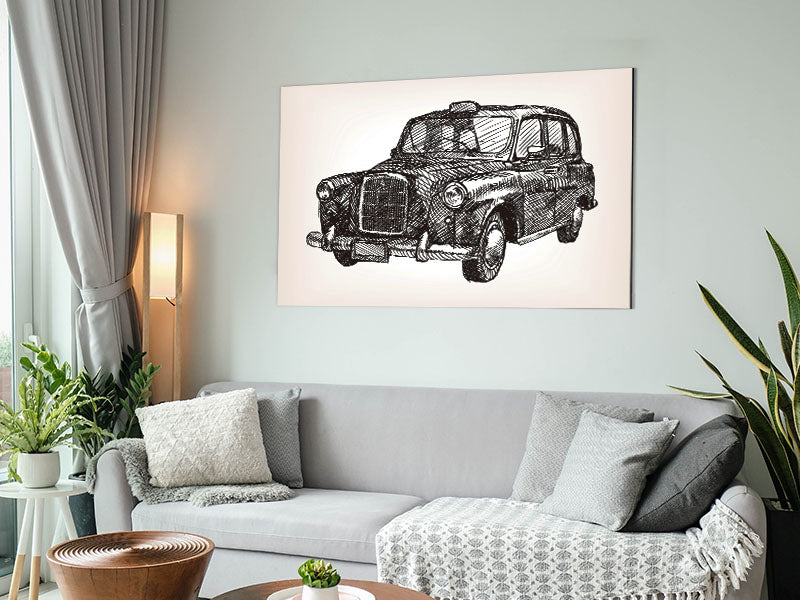 Iconic Black Cab Printed on brushed aluminium dibond. A modern way to display art and easy to maintain.