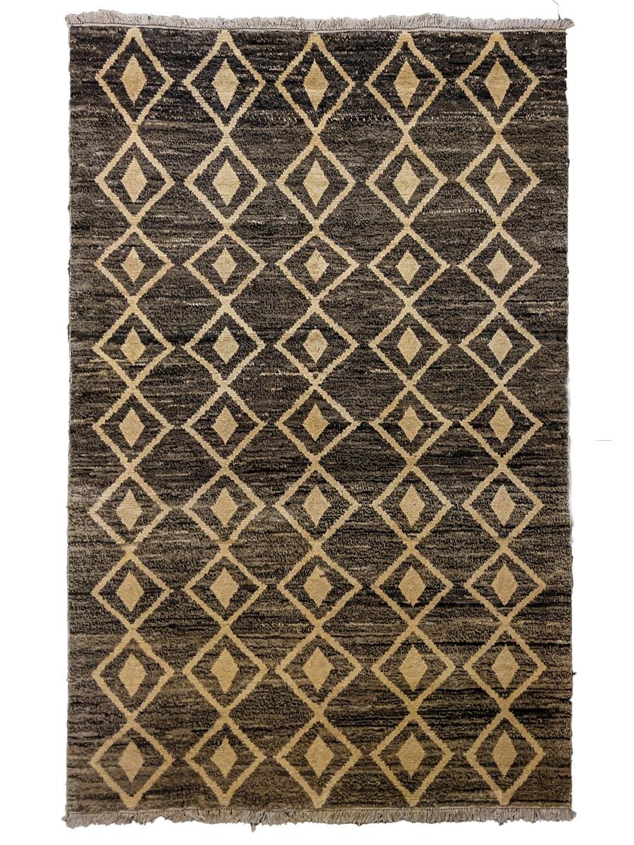 This modern Moroccan Ifrane rug is hand-knotted from high-quality wool. This rug conveys a message of consistency and discipline in your surroundings and mindset with its brown tones with an abrish effect and light-coloured geometric designs in the forefront.